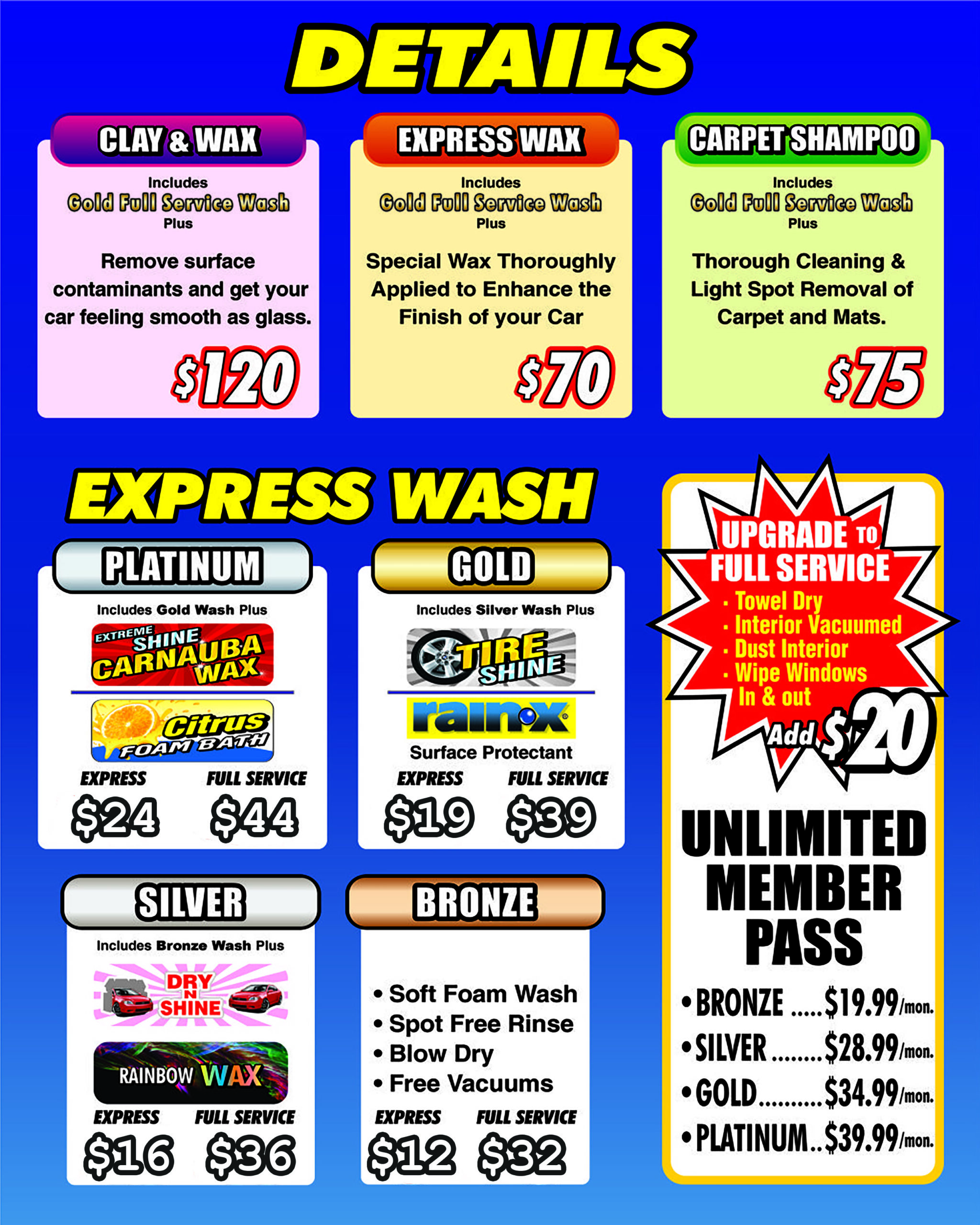 Unlimited car washes each month. Go anytime that is convenient for you.